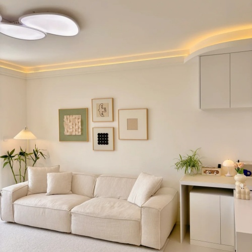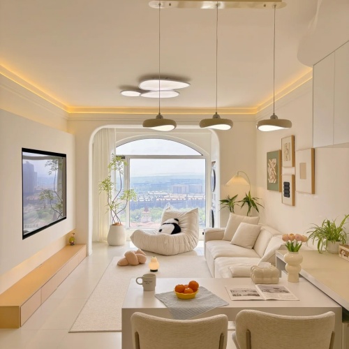 灯光设计是奶油风的灵魂。无主灯设计搭配隐藏式灯带、落地灯与壁灯,通过多层次的光源营造温暖氛围。暖白光(3000K-3500K)最能体现奶油色的质感,让空间在夜晚也充满柔情。软装方面,毛绒地毯、棉麻窗帘、陶瓷摆件等元素不可或缺,它们不仅提升舒适度,更强化了整体的慵懒与松弛感。